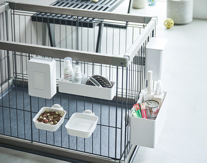 「ペットケージに取り付ける」シリーズは、ペットと家族がもっと快適に暮らせるように考えられたアイテムを展開しています。仕様やデザインを統一しているため、ほかのアイテムと組み合わせても見た目が揃い、使い勝手も統一されます。