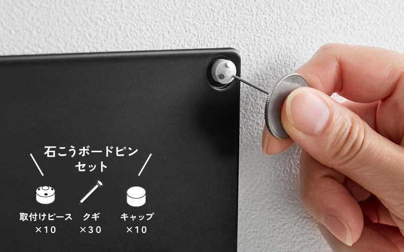 取り付けガイドにプレートを合わせ、石こうボードピンで壁面に固定するだけ。簡単に設置でき、取り外した跡も目立ちにくいので賃貸住宅でも使いやすい仕様です。