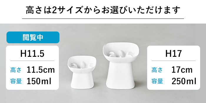 ボウルの高さはワンちゃん・ネコちゃんの特徴に合わせて2サイズからお選びいただけます。