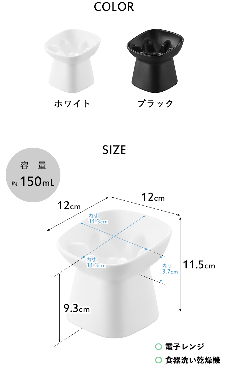 ※ボウルの容量に個体差が生じることがありますので、複数お持ちの場合はフードの計量の際、ご注意ください。