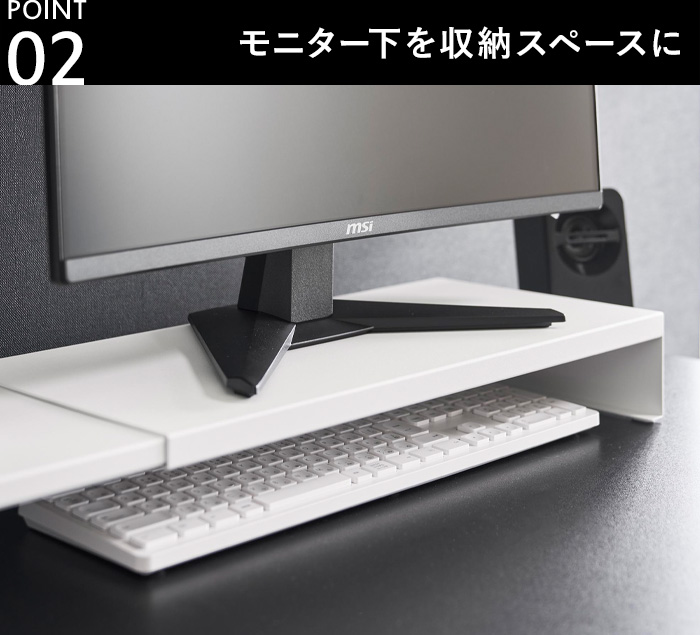 在宅ワークにも、趣味の時間にも。モニター下の空間を活かして、デスクまわりを心地よく整えます。
