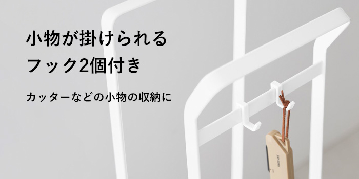 付属のフックでカッターなどの小物を掛けておくことも可能。ダンボールをまとめる時に使う道具を一緒に置いておけるため、必要な時にさっと手に取れます。