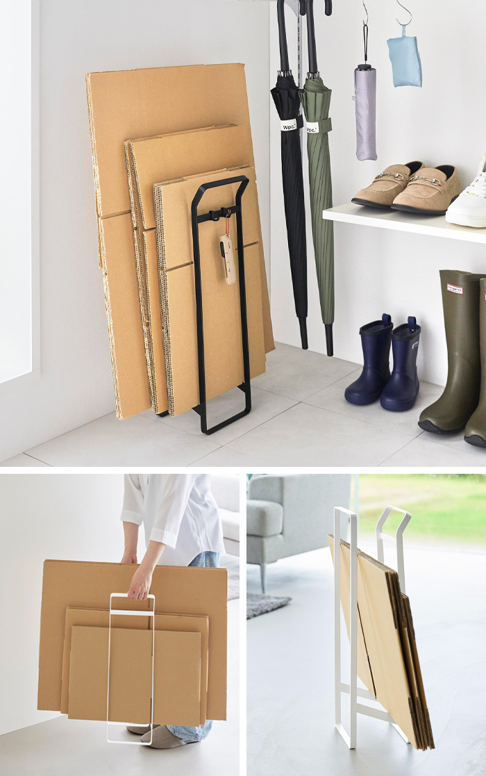 ダンボールを立ててまとめて保管できる便利なストッカーに、“持ち運べる”機能をプラス。