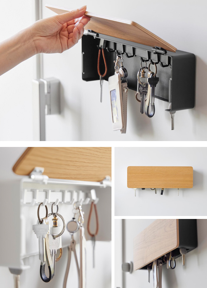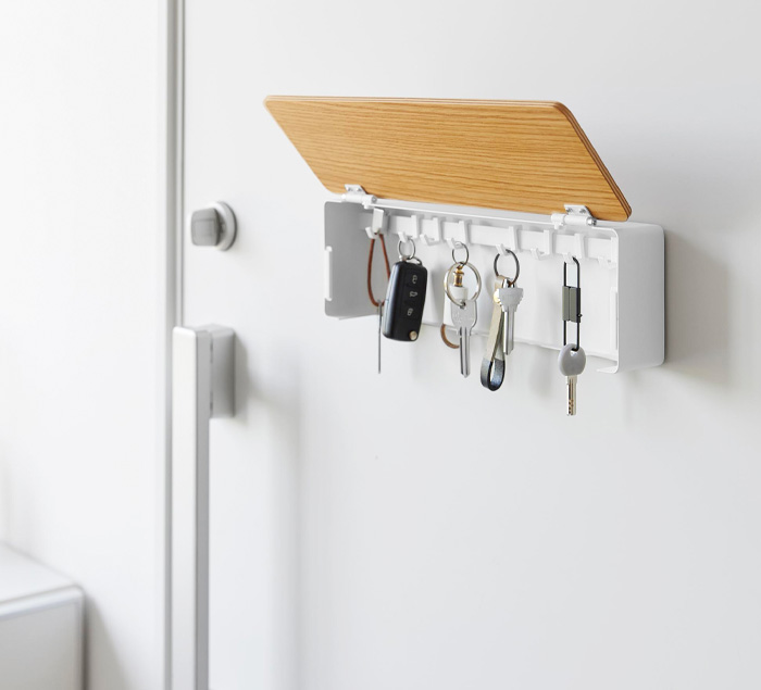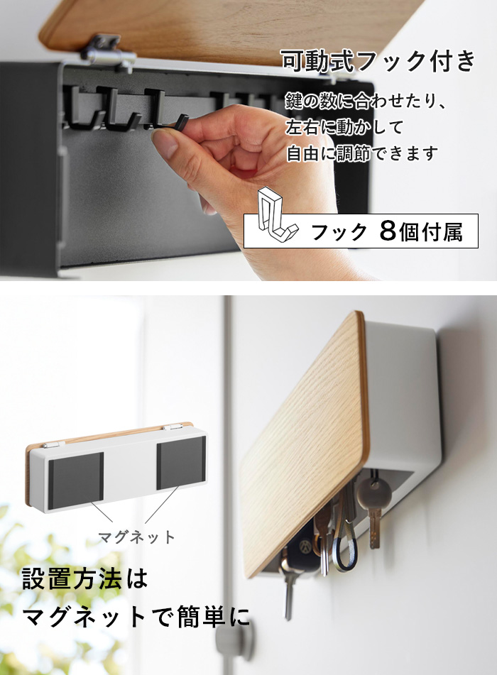 付属のフックで、鍵をたっぷり収納。取り外しや位置調節ができるので、鍵の数や大きさに合わせてお使いいただけます。