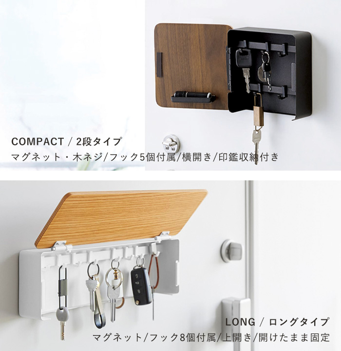 鍵をコンパクトにまとめたい場合は2段タイプ。長さのある鍵や大きめのキーも収納したい場合は、ゆとりのあるロングタイプがおすすめです。