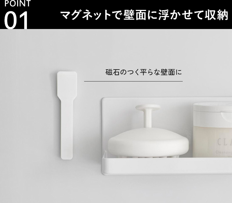 保管場所に悩むスパチュラを磁石で壁面に浮かせて収納できるマグネット内蔵のスパチュラ。マグネットのつくスチール面などに取り付けることで、お風呂上がりの保湿や朝のスキンケアの際にサッと使ってパッと収納できる快適さをプラスします。