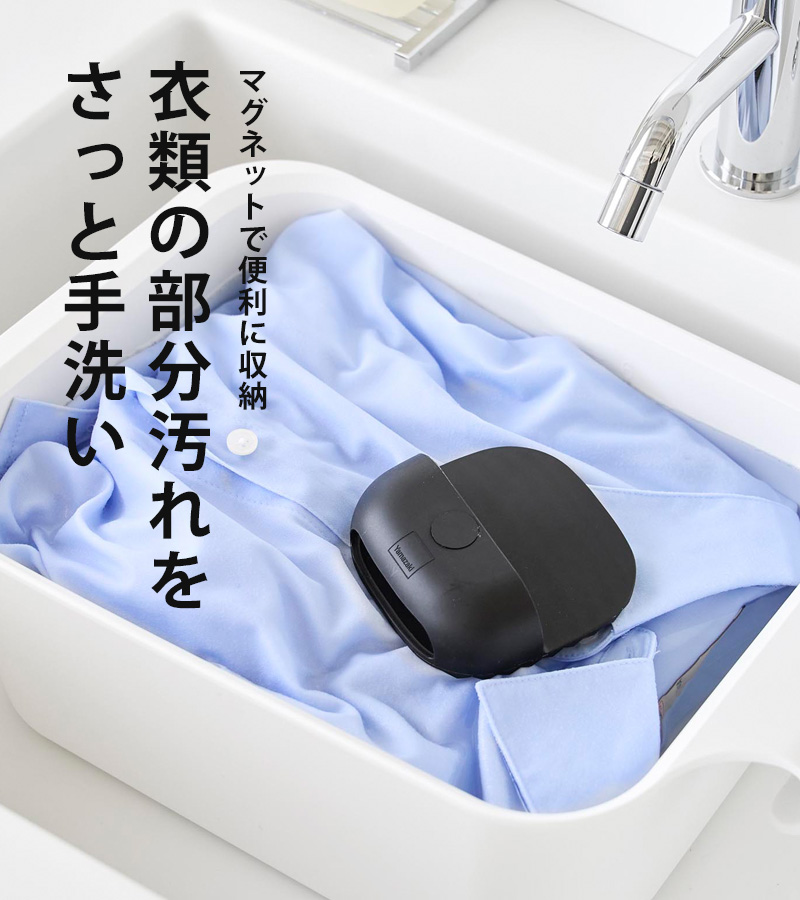 使いやすい手のひらサイズで、収納時も邪魔にならないコンパクトな設計です。襟や袖口につきやすい皮脂汚れ、ソックスや手袋などの小物衣類の汚れもさっと洗えて便利。