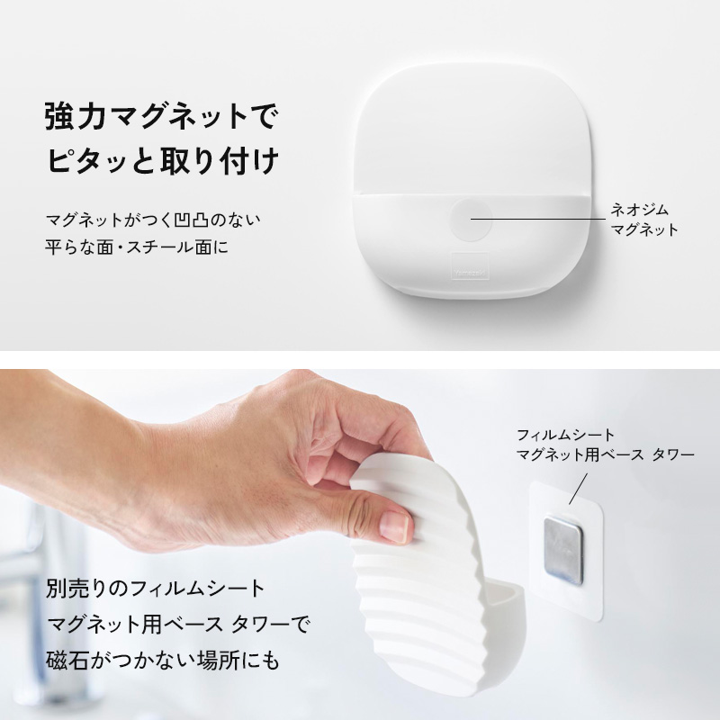 近くにマグネットが付く面がない場合でも、別売りの「フィルムシートマグネット用ベース タワー」を壁面に貼り付けることで"マグネットが付く場所"にすることができます。
