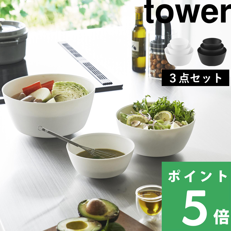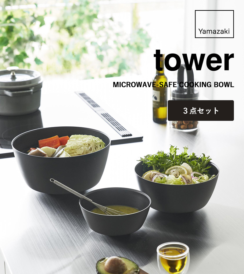 | 品 名 | tower 傾けて混ぜやすい調理ボウル タワー 3点セット 電子レンジ対応 |