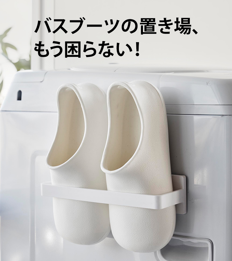 ホルダーに掛けるだけで置き場に困るバスブーツをスリムに収納できます。