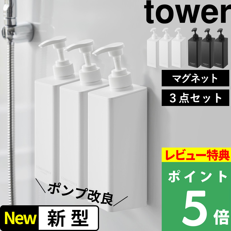 商品名 | tower たっぷり洗剤が出るマグネットディスペンサー タワー 3点セット(シャンプー/コンディショナー/ボディソープ) |