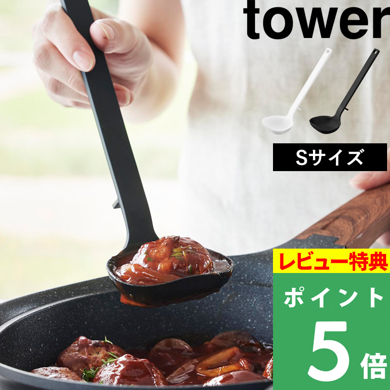 Sサイズもレギュラーサイズも、大さじ1(15cc)・大さじ2(30cc)分が計れるメモリ付き。背面に突起があり、置くと自然と先端が浮く仕組みに。使い勝手をよくするポイントが詰め込まれたtowerのお玉です。