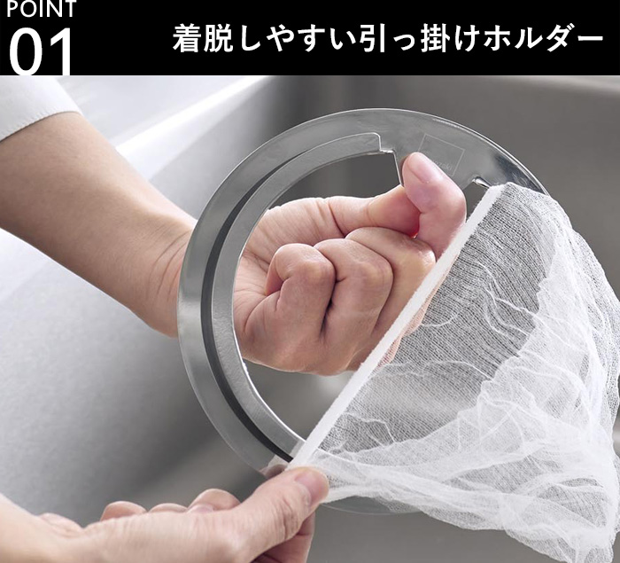 汚れた排水口ネットになるべく触れずに交換できる排水口ネットホルダー。