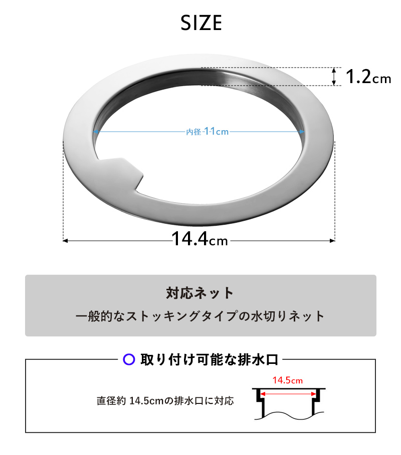 | 備 考 | <対応排水口サイズ> 直径14.5cmの排水口 |