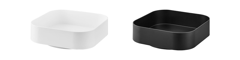 縁に高さがあるデザインでトレーを回転させても収納物が落ちにくく、底には滑り止めがついているので回転させる際も安定しています。