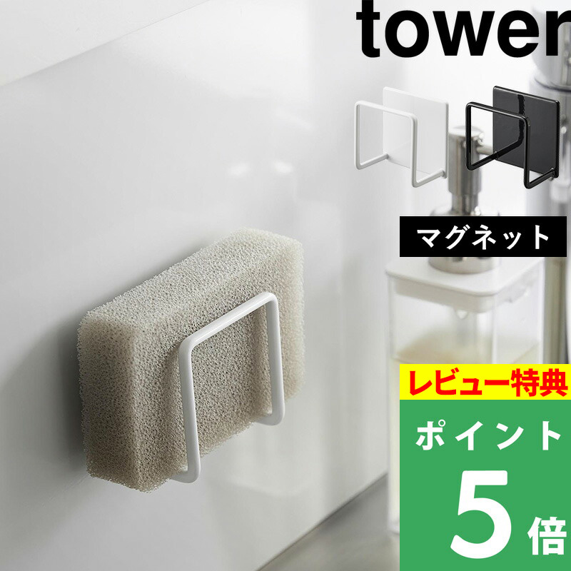 マグネットがつくキッチンパネルやシンク中に、towerの強力マグネットでピタッと簡単設置。スポンジ1個を省スペースにすっきりと収納できます。