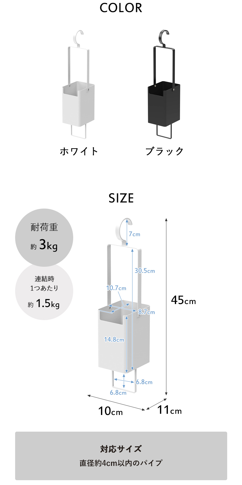 | 備 考 | <対応サイズ> 直径約4cm以内のパイプ |