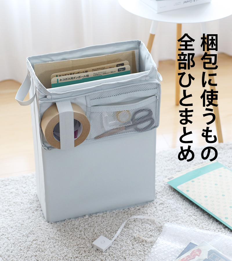 梱包に必要な資材と道具をひとまとめにできる収納ボックス。
