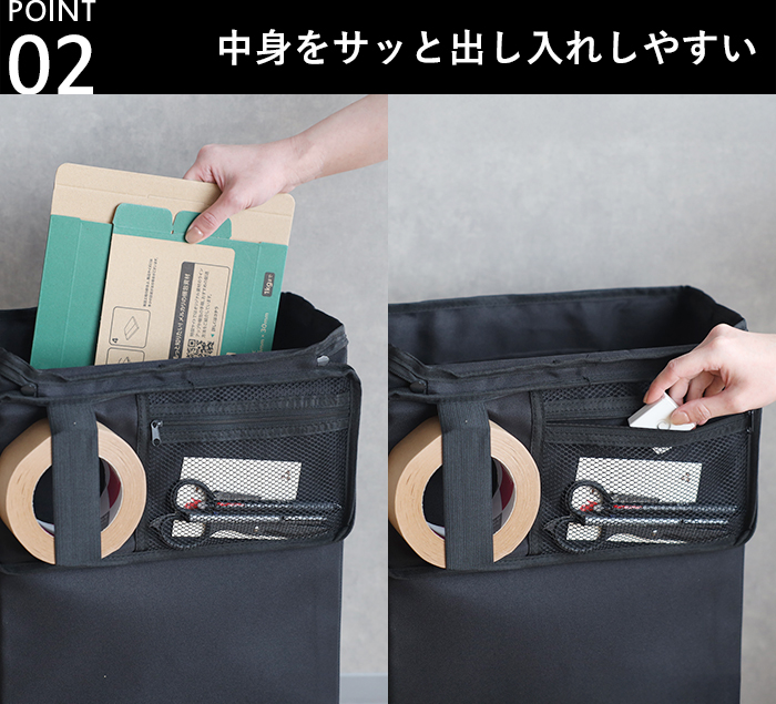 必要なものをまとめて取り出せるのでフリマアプリやオークション、ハンドメイド品の通販などの梱包作業にすぐに取り掛かれます。