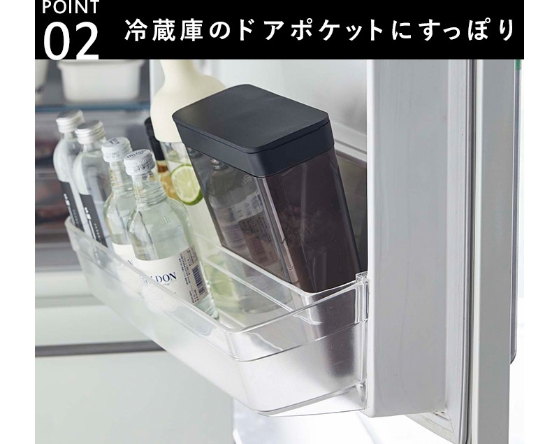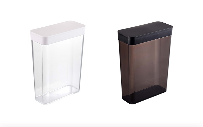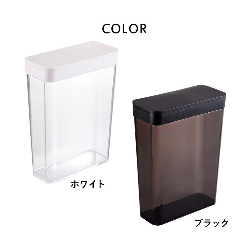 | キッチンやカウンター、冷蔵庫のドアポケットにもすっきりと収納出来るスリムな長方形です。冷蔵保存が必要なお米や粉類などの保管にも便利です。 |