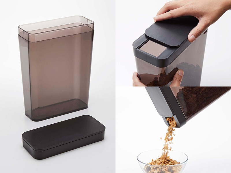 スライドするだけで簡単に蓋が開閉できるドライフードストッカー!朝食用のシリアルや雑穀、ナッツ、クラッカー、お米や粉類、乾物の保存に便利です。両方向に開閉することが可能。スリムだから持ちやすいサイズ。部品は全て分解して洗えます。