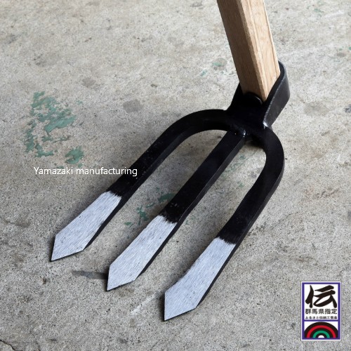 三本 備中鍬 (刃先 剣) 樫柄付 鍬 山崎製作所 収獲後や春先の耕地起こしに最適
