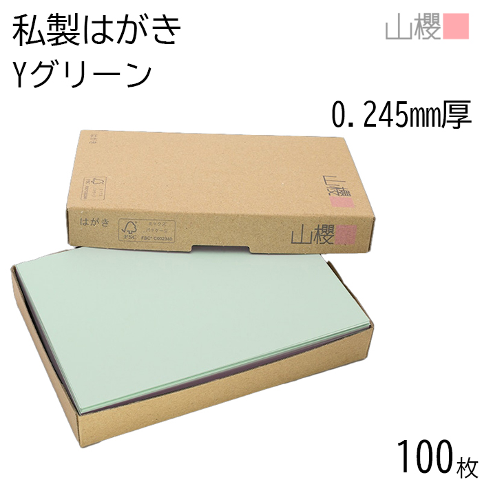 山櫻 はがき 郵便はがき No.113 Yカラー グリーン 0.245mm厚 〒枠入 100枚 / パステルカラー 無地 郵便番号枠あり 00209008-0100