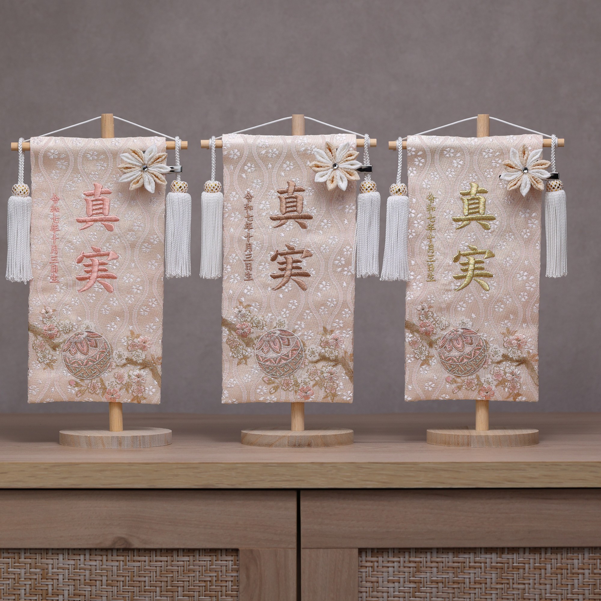 【今期分完売】くすみカラー マリ桜の金襴名前旗 (小) 25cm 命名旗 京都金襴