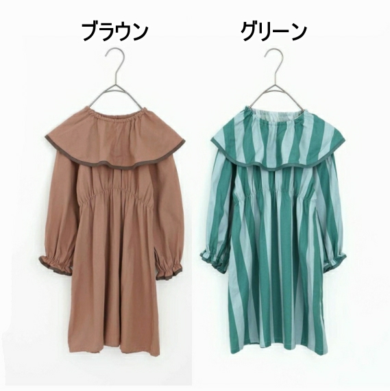 30%OFF/メール便/子供服/キッズ/女子/長袖/ストライプ/衿フリルのワンピース/p.premier【ピードットプルミエ】