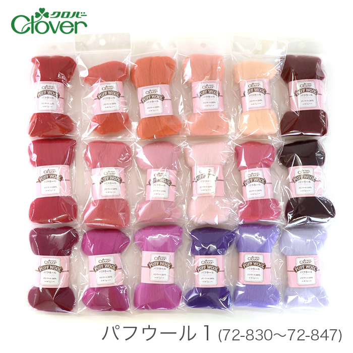 羊毛フェルト 材料 ウールフェルト / Clover(クロバー) パフウール 1 (72-830〜72-847)