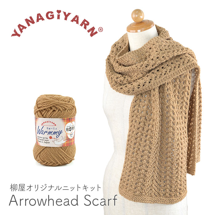 柳屋オリジナル毛糸「Warmmy(ウォーミィ)」で編む、「Arrowhead Scarf(アローヘッドスカーフ)」の編み図と毛糸のキット。