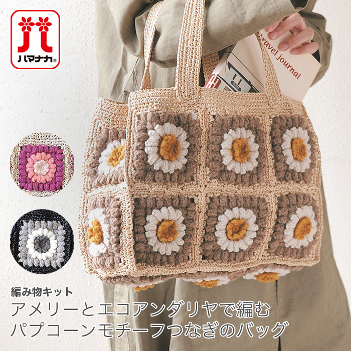 編み物 キット Hamanaka(ハマナカ) アメリーとエコアンダリヤで編むパプコーンモチーフつなぎのバッグキット