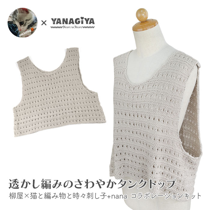 柳屋×猫と編み物と時々刺し子+nanaコラボ 透かし編みのさわやかタンクトップ キット