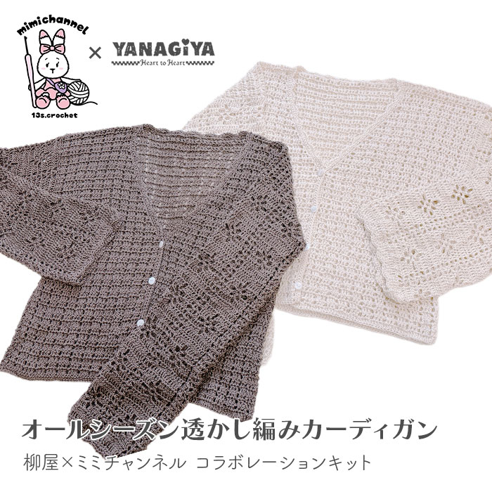 カーディガン キット 毛糸 編み図 / YANAGIYARN(ヤナギヤーン) 柳屋×Mimichannel(ミミチャンネル)コラボ オールシーズン透かし編みカーディガンキット