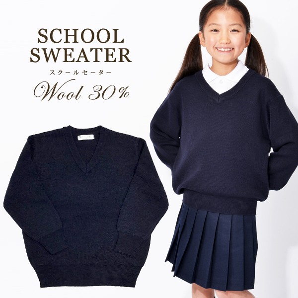 【送料無料・数量限定】スクールセーター[ウール30%タイプ] 長袖 濃紺無地 ウール混スクールセーターVネック 子供100〜180サイズ