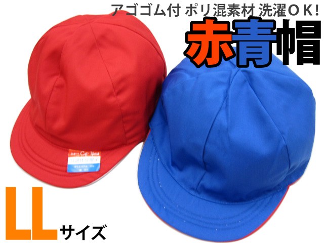 【店長オススメ アゴゴム付 ポリ混素材 赤青帽子 LLサイズ】 -1F-