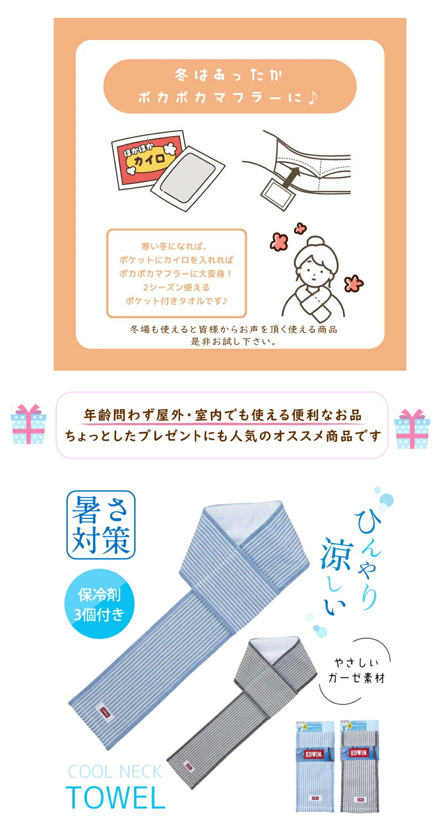 ・冬場はミニカイロ等を入れて頂くと首元あったか。