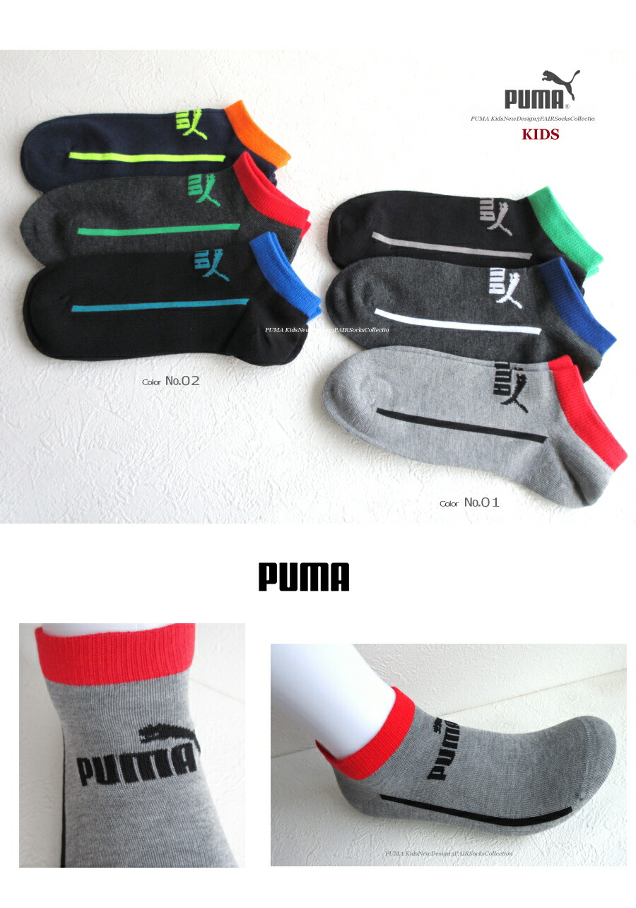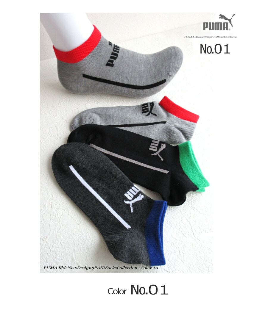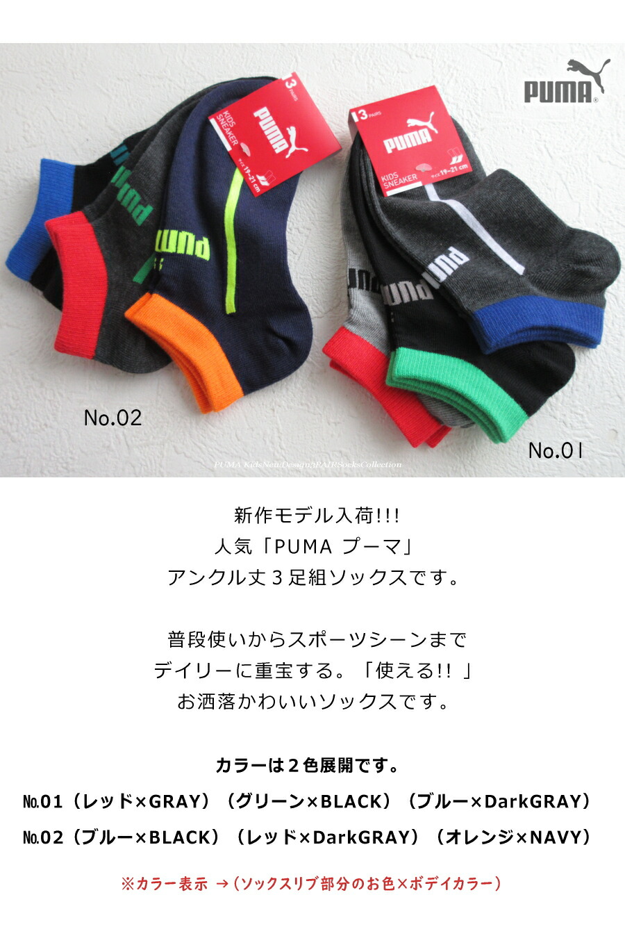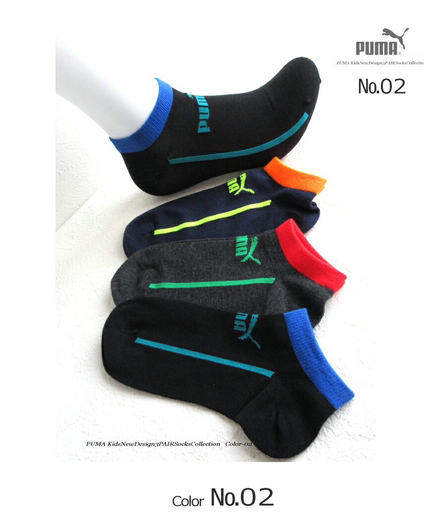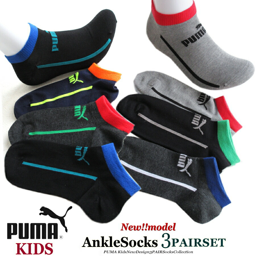 PUMA キッズ ソックス 3色3足組 サイドライン アンクル丈 2色展開 しっかり丈夫 ショート プーマ ジュニア 男女兼用 19-21cm 21-23cm 23-25cm ナイガイ 靴下