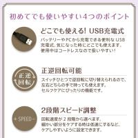 モバイルバッテリーやパソコンから充電できるUSB充電式を採用!