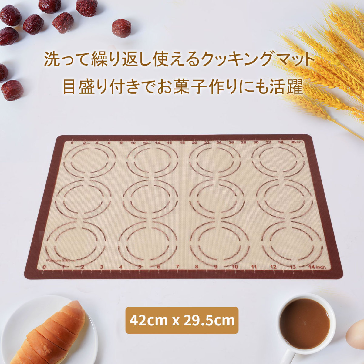 クッキングマットとは、お菓子作りや料理をする際に生地がくっつきにくいマットです。