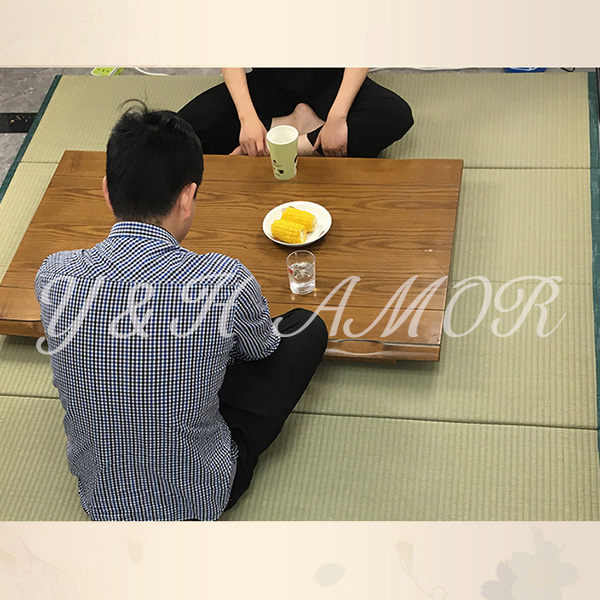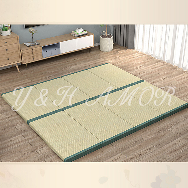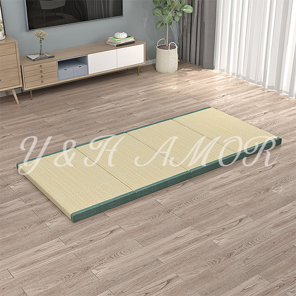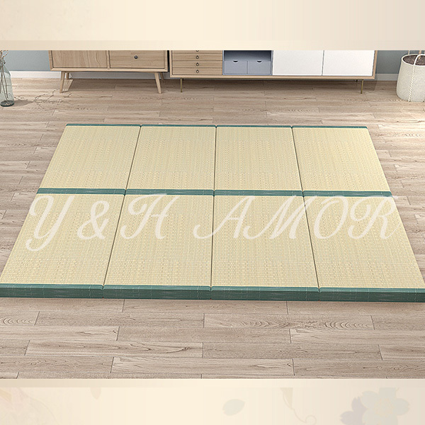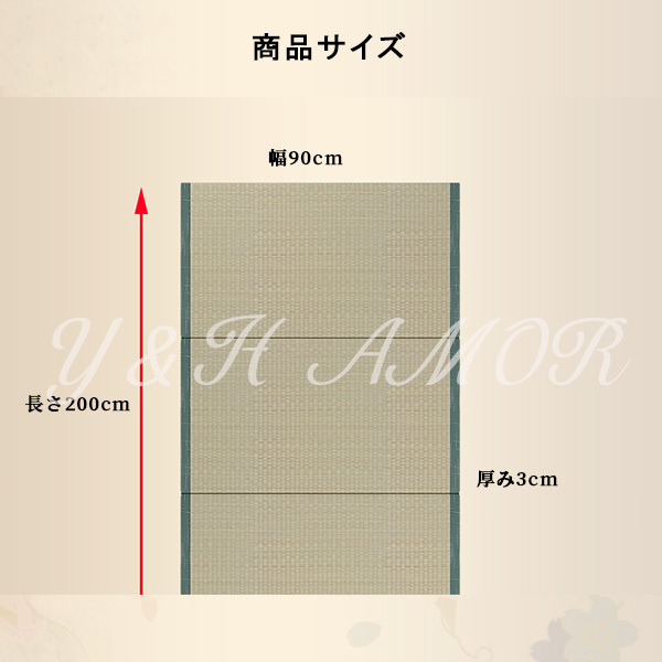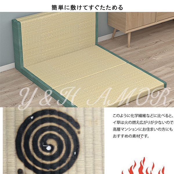 ○簡単に設置できる置き畳です。表面は天然素材のい草を100%使用した身体に優しくサラッとした肌触りです。中身は発砲ポリエチレンを使用しふんわりとした踏み心地のフロアー畳です。