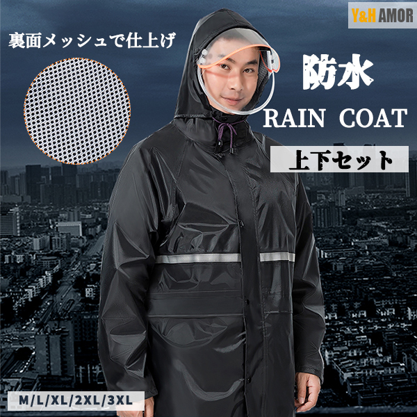 レインコート上下セットランニング レインスーツ メンズ レディース防水 撥水 通勤 通学 雨具 防水 登山 釣り レインウエア 防水 反射テープ