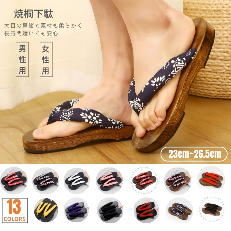 サンダル 和柄 レディース メンズ 女性 浴衣 焼桐 下駄 おしゃれ 痛くない 安い 14柄 桐 木製 滑りため 丈夫 和柄 和風 桐下駄