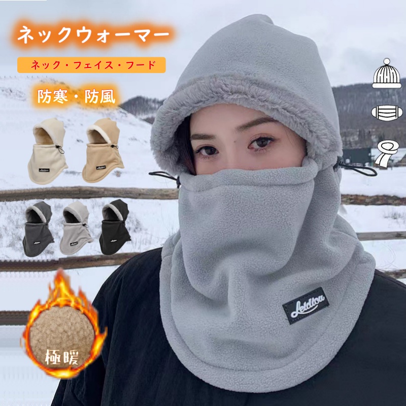 ネックウォーマー メンズ レディース 防寒 フェイスカバー 帽子 裏起毛 着脱簡単 フードウォーマー 暖か 防風 保温 調節コード 男女兼用