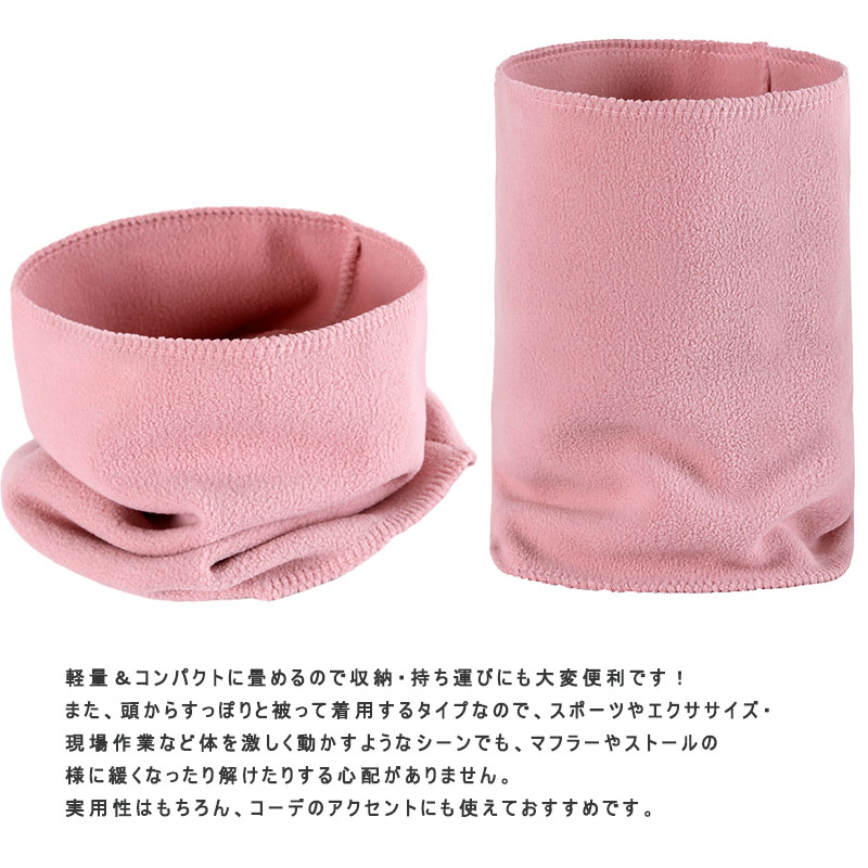 ○裏起毛の二重厚手フリースで、顔まわりから肩までを360度しっかり保温。肌ざわりがやさしく、冷たい風をブ○ヘルメットの下にもかぶれる軽やか設計。