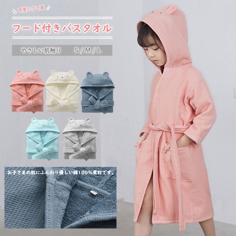 バスローブ バスタオル キッズ 男の子 女の子 綿100% ルームウェア フード付き ポンチョタオル 子供 タオル地 長袖 お風呂 プール 海 海水浴