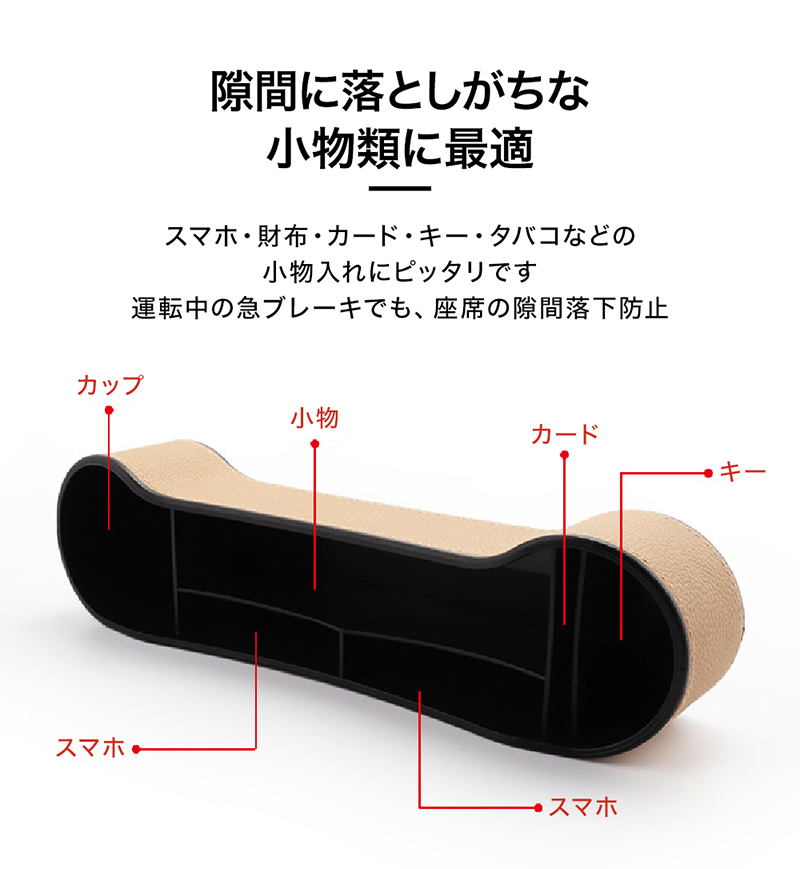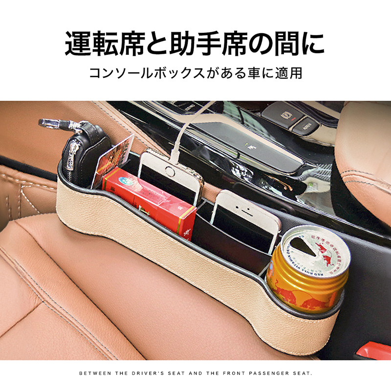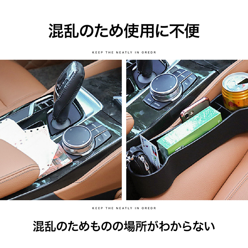 スマートフォン、財布、カード、お金、キー、カップなどを綺麗に収納できます。 運転席と助手席の間にコンソールボックスがある車に適用〜 直接挿入し、ギャップを埋めるだけで便利です。