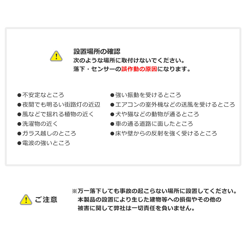 ※自動車のダッシュボードや窓際などの直射日光の当たる場所での保管や、火の近く・高温・多湿の場所での使用、ならび蓄電、保管はしないでください。事故、故障の原因になります。