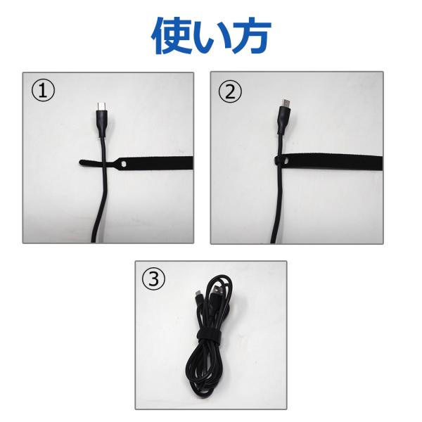ケーブルバンド 50本セット ケーブルタイ マジックテープ 薄型 ケーブルクリップ ブラック ホワイト 面ファスナー USBケーブル 黒 白