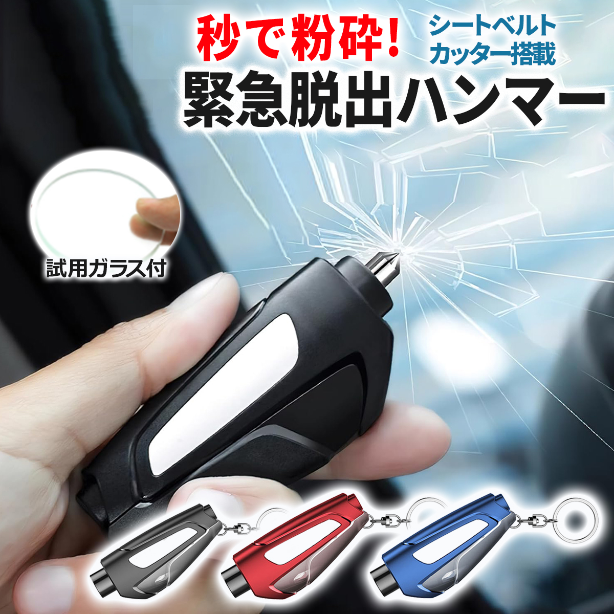 脱出ハンマー コンパクト ナイフ付き レスキューハンマー 車 脱出用ハンマー 緊急 窓ガラス 粉砕 シートベルト カッター 携帯型 ミニホルダー 自動車 水没